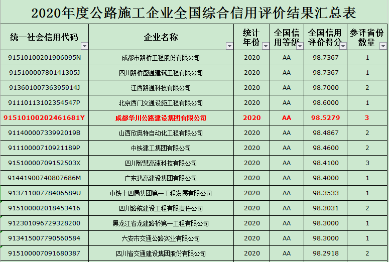 集團(tuán)連續(xù)四年榮獲交通運(yùn)輸部公路施工企業(yè)全國綜合信用評(píng)價(jià)AA級(jí),得分98 53分,再創(chuàng)歷史新高。自集團(tuán)成立以來,一直秉承創(chuàng)造價(jià)值、鑄造品牌