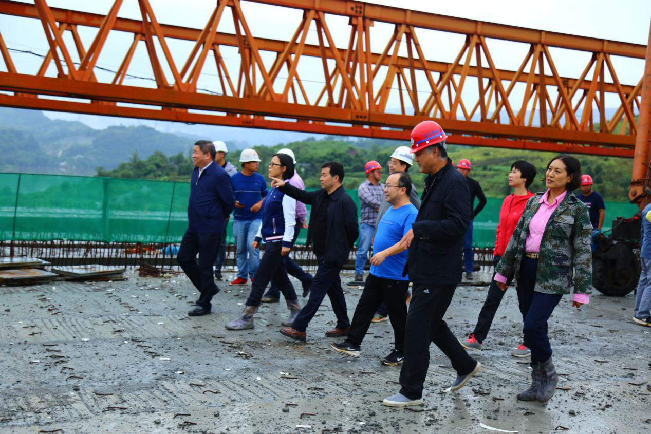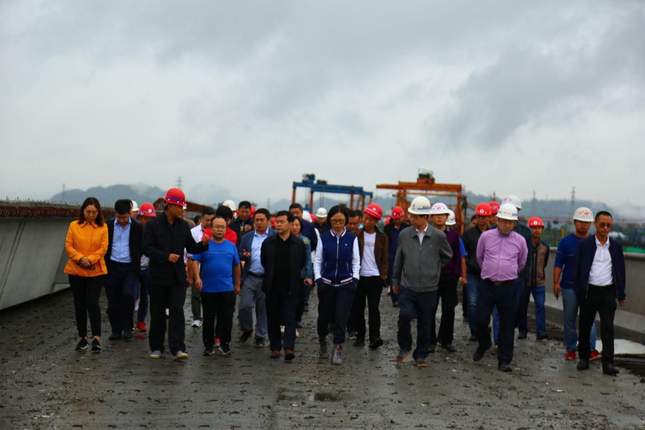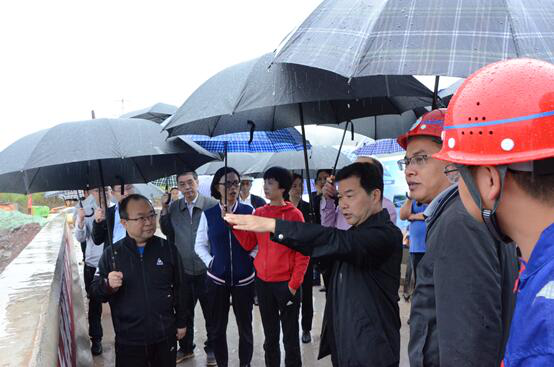 9月17日,集團(tuán)黨委書(shū)記、董事長(zhǎng)、總裁謝應(yīng)文、常務(wù)副總裁駱曉紅等領(lǐng)導(dǎo)率集團(tuán)各職能部門(mén)負(fù)責(zé)人,在營(yíng)達(dá)項(xiàng)目向年底通車(chē)目標(biāo)發(fā)起總攻、決戰(zhàn)決勝的關(guān)鍵時(shí)刻,冒雨深入營(yíng)達(dá)高速項(xiàng)目施工一線(xiàn)現(xiàn)場(chǎng)督導(dǎo)慰問(wèn)。營(yíng)達(dá)公司總經(jīng)理謝應(yīng)武及參建單位負(fù)責(zé)人等陪同。