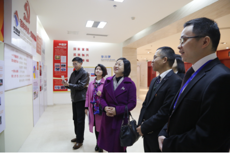 陳主席一行首先參觀了集團(tuán)黨員活動室和企業(yè)文化宣傳區(qū),高度肯定集團(tuán)黨建工作和文化建設(shè)工作。陳主席在參觀過程中說到,華川集團(tuán)黨建陣地建設(shè)十分出色,集團(tuán)黨建工作充分、扎實,值得學(xué)習(xí)和借鑒。在座談會上,陳主席一行觀看了集團(tuán)宣傳片,全面了解了集團(tuán)經(jīng)營理念、發(fā)展歷程、社會責(zé)任和企業(yè)榮譽(yù)等信息。隨后,集團(tuán)副董事長駱小紅向陳主席一行介紹了集團(tuán)產(chǎn)業(yè)發(fā)展、重點項目和企業(yè)管理等相關(guān)情況。