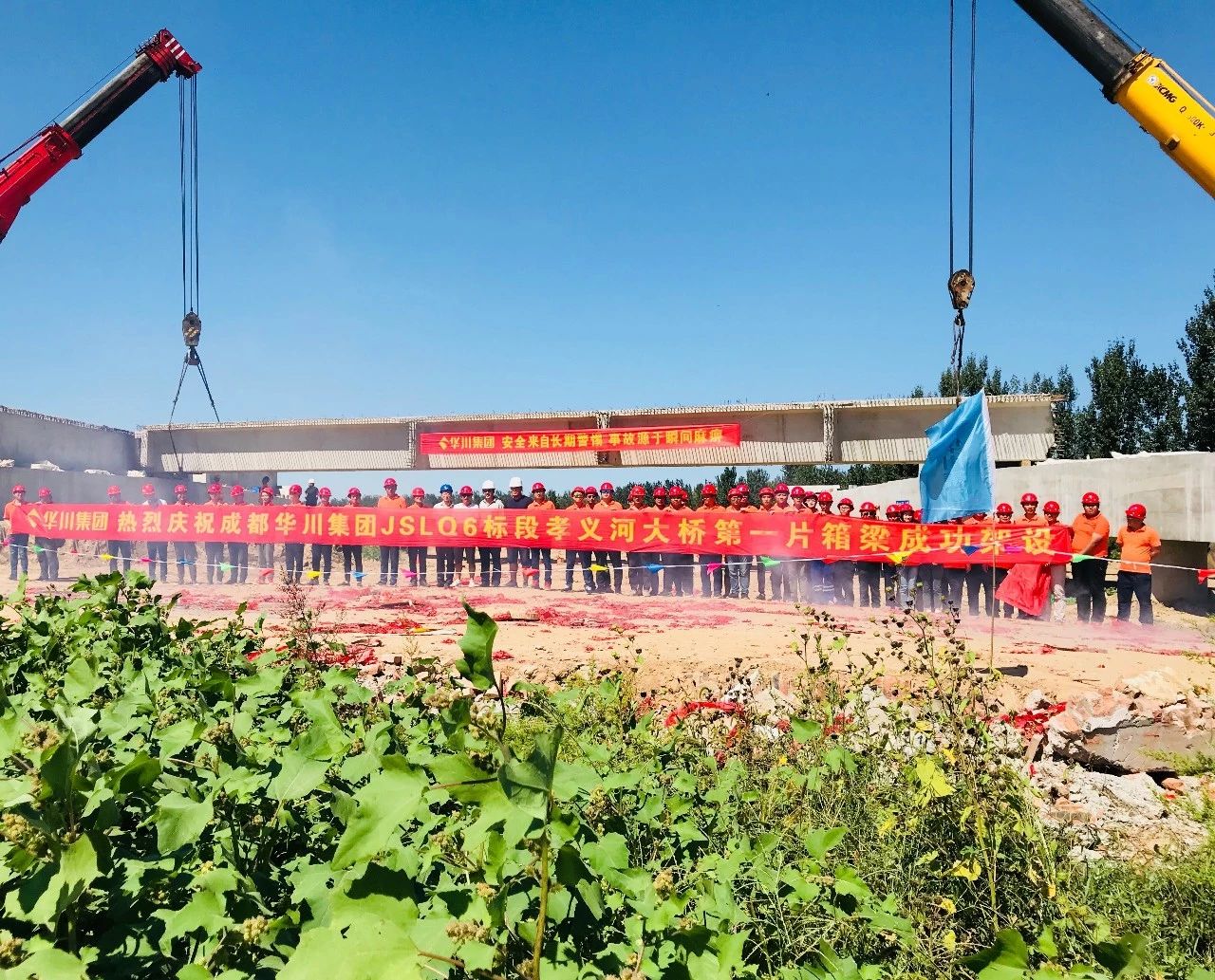 [華北:津石項(xiàng)目]孝義河大橋首片箱梁成功架設(shè)